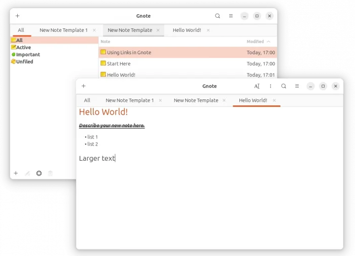 It looks native and well integrated with GNOME, but does not look exactly a sticky note app, since notes are grouped in tabs rather than small windows.