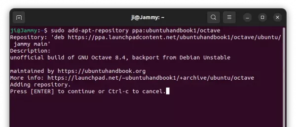 sudo add-apt-repository ppa:ubuntuhandbook1/octave