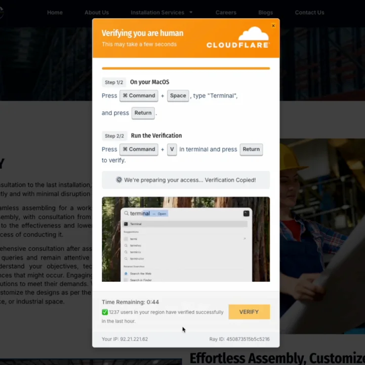 Push Security has spotted one of these pages, showing an embedded tutorial video on how to perform the asked-for actions, a timer ostensibly counting down the seconds left to act, and a “users verified in the last hour” counter – all aimed at pressing users to act quickly, without thinking.