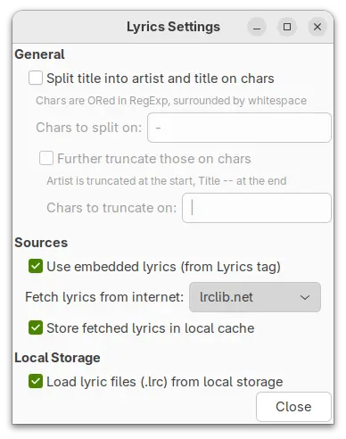 For the Lyrics plugin, the release added support fetching lyrics from lrclib.net. It’s a free open-source service that provides synchronized lyrics, primarily in the LRC format.