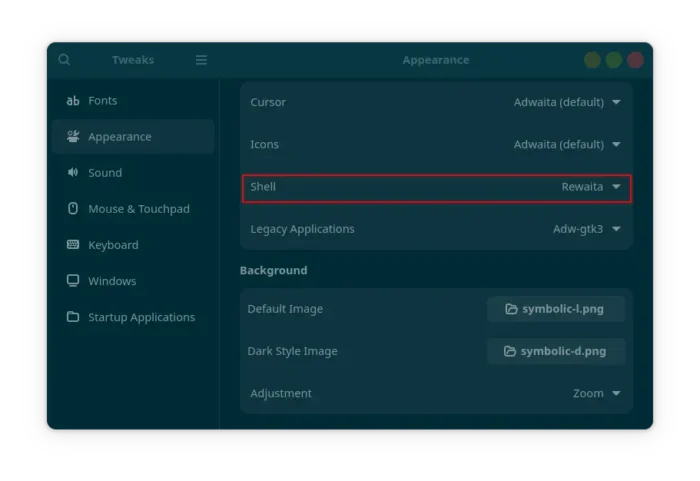 Tips: if “Shell” theme option is grayed out, then you need to install User Themes extension: