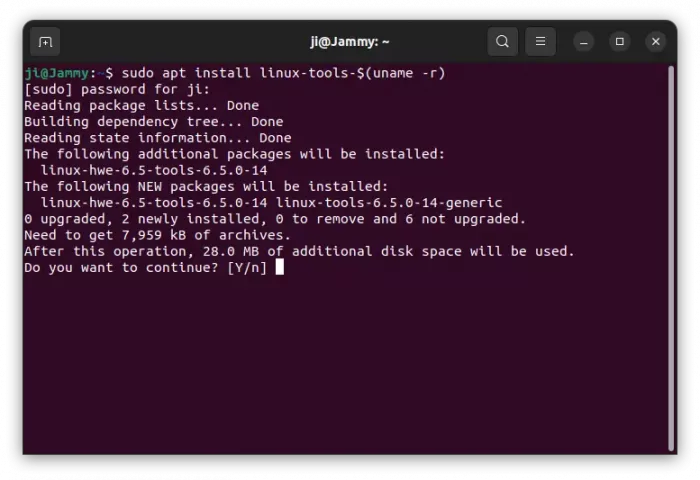 1. First, open terminal (Ctrl+Alt+T) and run command to install the tool for current Linux Kernel.