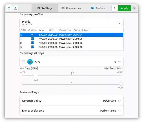 If you’re looking for a graphical tool to manage CPU power and frequency, I’ve written about it via following tutorials. They include: