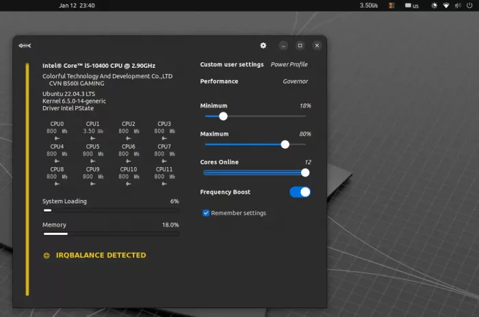 For the default GNOME Desktop, the built-in power mode settings may conflict with the cpupower commands above.