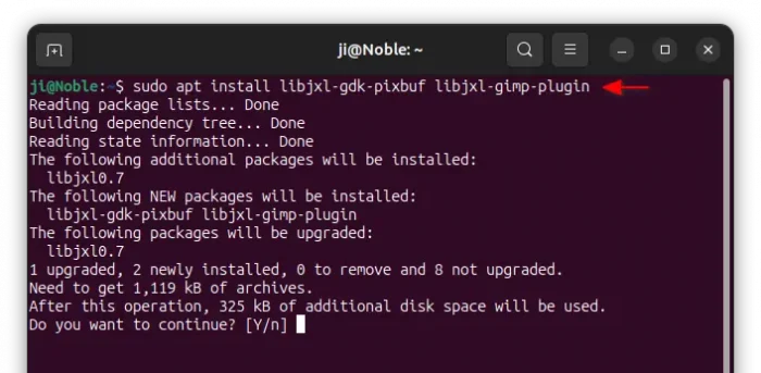 3. Finally, run command to install libjxl gdk-pixbuf and GIMP plugin: