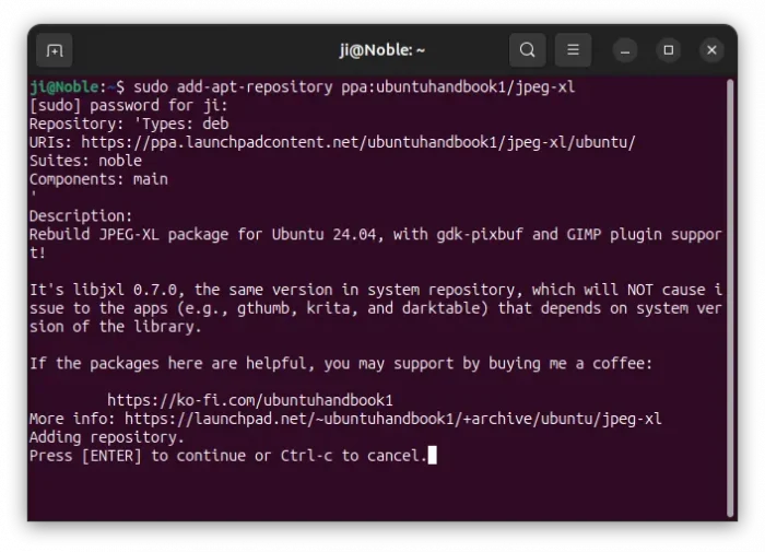 sudo add-apt-repository ppa:ubuntuhandbook1/jpeg-xl
