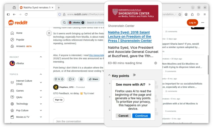 The feature allows to long press (or right-click and choose “Preview Link”) a link to preview the page that can optionally include AI-generated key points. The AI content are processed on user’s local device, though it recommends more than 3 GB of available RAM.