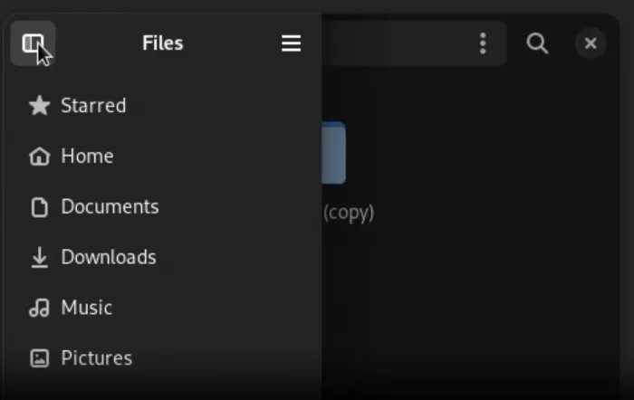 However, in GNOME 45 the toggle button will disappear once clicking on it to show the sidebar. User has to click anywhere outside to hide the sidebar again. Now, the button is also added to the sidebar to make it less confusing.