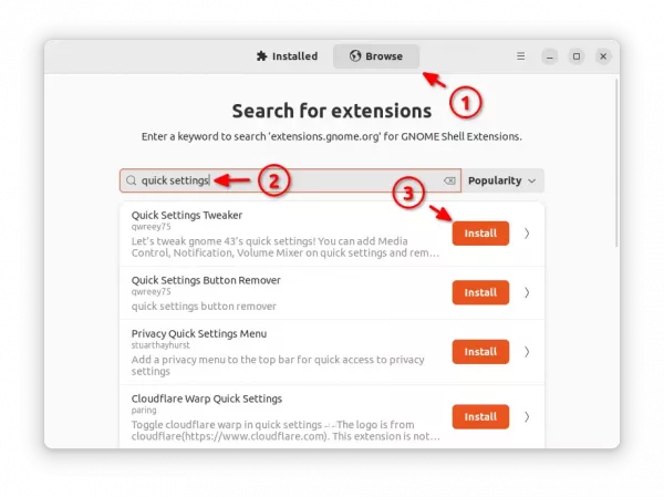 Ubuntu users can firstly search for and install “Gnome Extension Manager” from App Center. Then use the tool to search & install ‘Quick Settings Tweaker‘ extension.