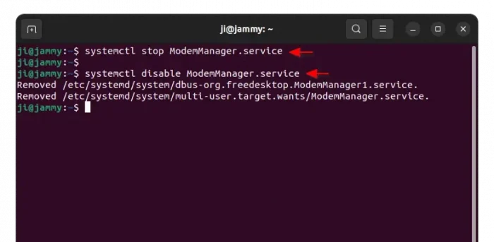 For choice, you may combine the 2 commands into single systemctl disable --now ModemManager.service command, which disables the service and stops it immediately.