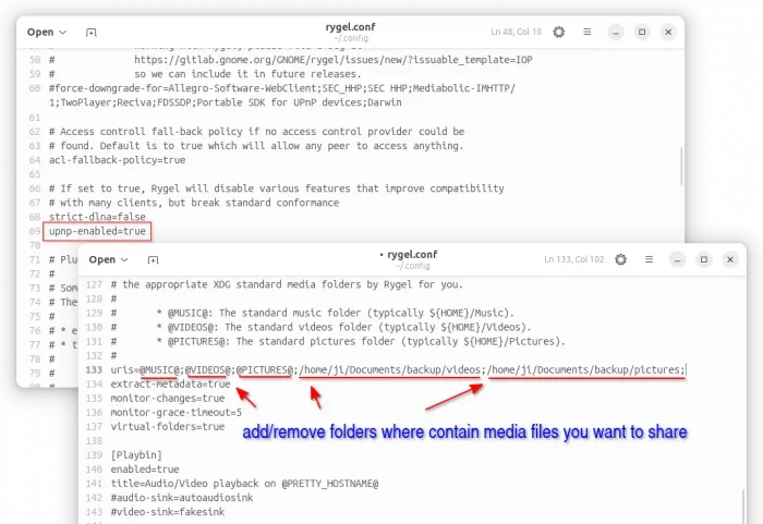 or run nano ~/.config/rygel.conf if you’re following this tutorial on Ubuntu/Debian Server.