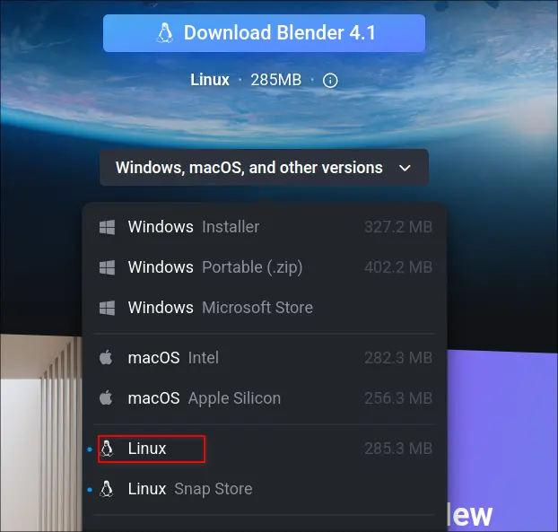 1. First, go to blender website via the link button below, and click big ‘Download Blender x.x‘ button to download the tarball in Linux.