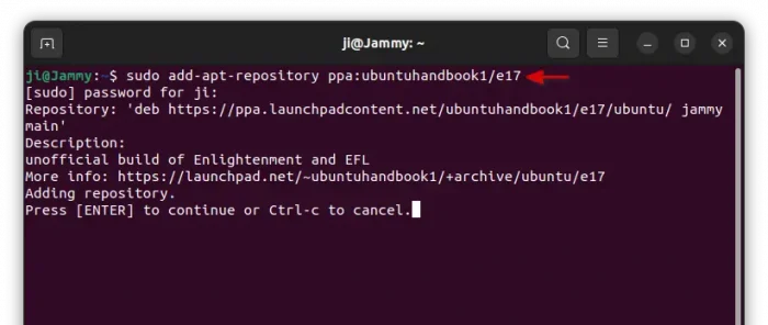 sudo add-apt-repository ppa:ubuntuhandbook1/e17