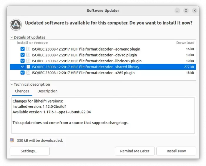 However, libheif in Ubuntu system repositories is always old! While it has 1.6.1 (for 20.04) and 1.12.0 (for 22.04), the latest release is now 1.17.6 and keeps moving.