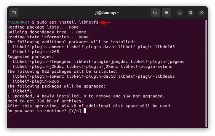 There are as well heif-gdk-pixbuf for image loading, and libheif-examples package that provides heif-convert command to convert HEIC/HEIF image to other formats, and heif-enc to convert image to HEIC/HEIF.
