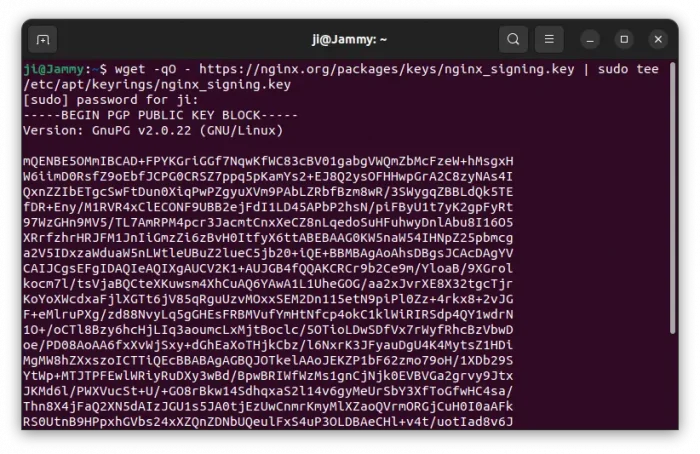 wget -qO - https://nginx.org/packages/keys/nginx_signing.key | sudo tee /etc/apt/keyrings/nginx_signing.key