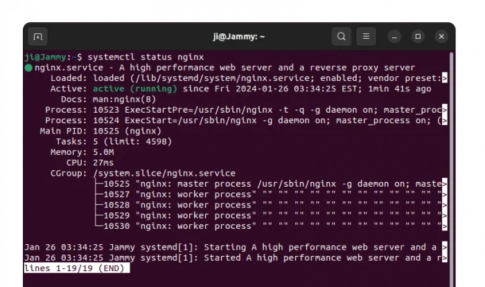 After installing Nginx, it should start automatically. To verify its status, run command: