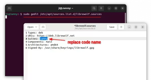 sudo gedit /etc/apt/sources.list.d/librewolf.sources