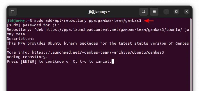 sudo add-apt-repository ppa:gambas-team/gambas3