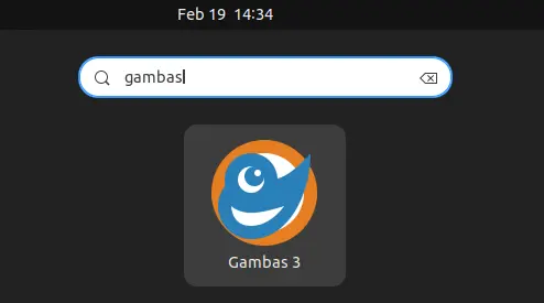 After installation, search for and launch gambas from either start menu or Gnome overview depends on your desktop environment.