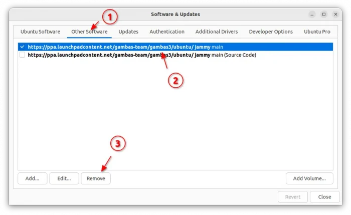 sudo add-apt-repository --remove ppa:gambas-team/gambas3