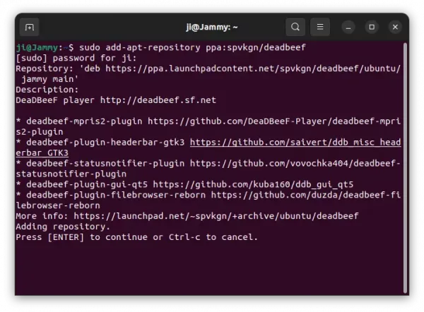 1. First, press Ctrl+Alt+T on keyboard to open terminal. When it opens, run command to add the PPA: