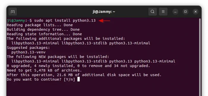 2. Then, install Python 3.13 by running command (Linux Mint needs to run sudo apt update first to refresh package cache):