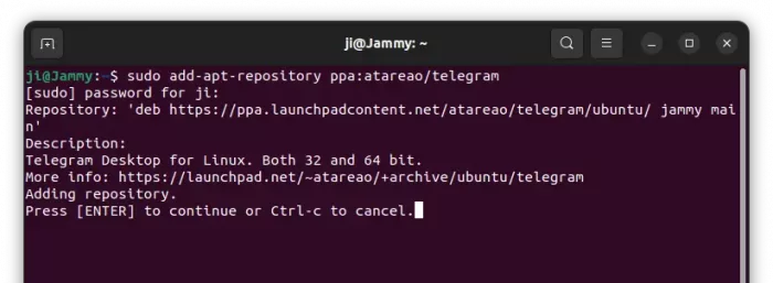 Method 4: Install Telegram from Ubuntu PPA (Unofficial)
