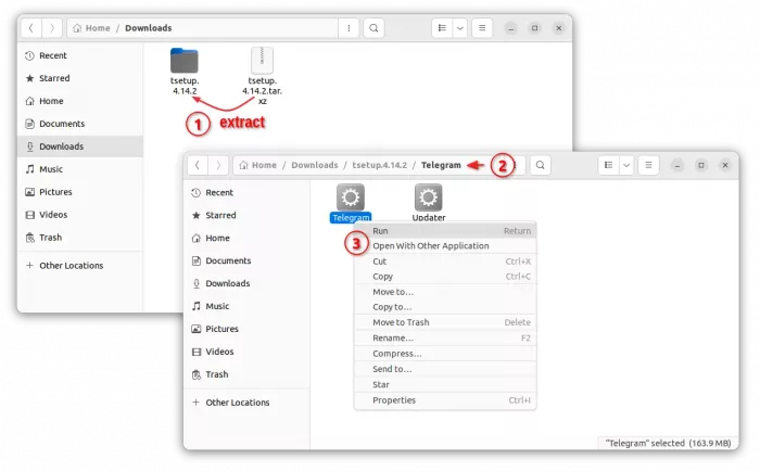 After downloading the tarball, open the Downloads folder and extract it. Finally, click run the executable file from-in new generated folder to launch the messenger.