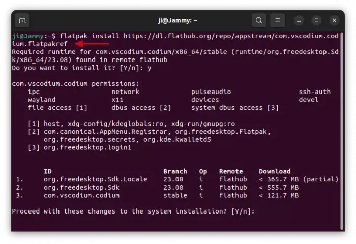 flatpak install https://dl.flathub.org/repo/appstream/com.vscodium.codium.flatpakref