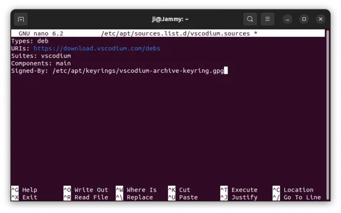 sudo nano /etc/apt/sources.list.d/vscodium.sources