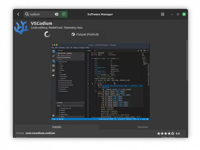 Method 2: Install VSCodium via Flatpak (Unofficial)