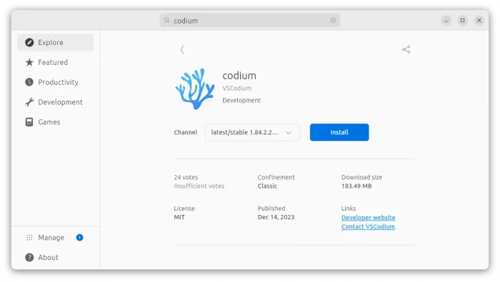 Using Snap is the easiest way to install applications in Ubuntu. And, VSCodium Snap package features: