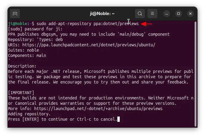 For those who prefer native .deb package, Ubuntu Team maintains a PPA repository that contains the .NET 10 preview for all current Ubuntu releases on amd64, arm64, ppc64el, and s390x platforms.