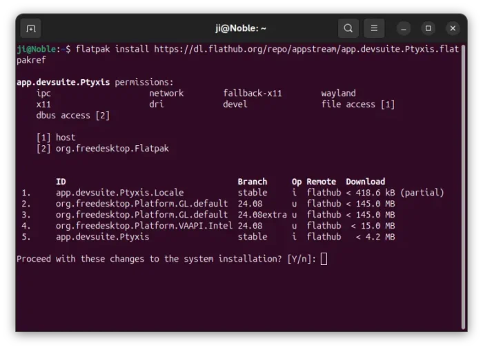 flatpak install https://dl.flathub.org/repo/appstream/app.devsuite.Ptyxis.flatpakref