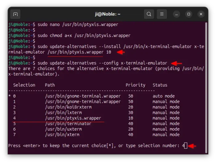 sudo update-alternatives --install /usr/bin/x-terminal-emulator x-terminal-emulator /usr/bin/ptyxis.wrapper 10