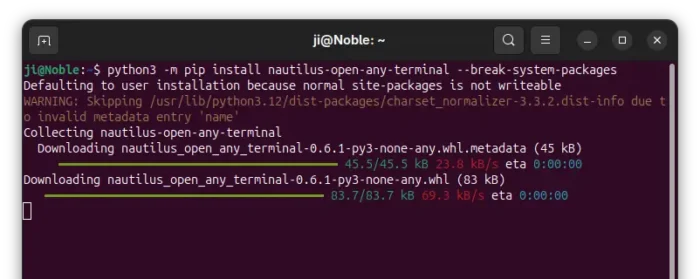 python3 -m pip install --user nautilus-open-any-terminal --break-system-packages