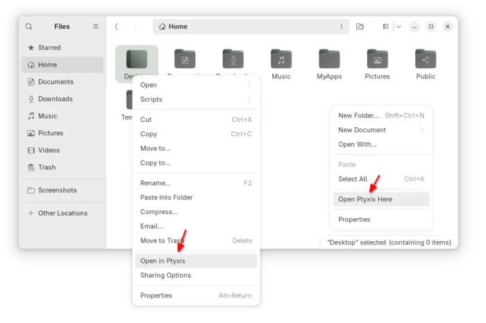 Step 3: Add “Open in Terminal” Context Menu option for Ptyxis