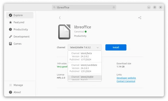 The LibreOffice download page provides all the supported package formats for Linux, Windows, and macOS users.