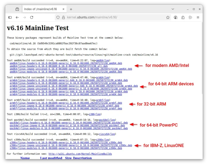wget -c https://kernel.ubuntu.com/mainline/v6.16/amd64/linux-headers-6.16.0-061600-generic_6.16.0-061600.202507272138_amd64.deb wget -c https://kernel.ubuntu.com/mainline/v6.16/amd64/linux-headers-6.16.0-061600_6.16.0-061600.202507272138_all.deb wget -c https://kernel.ubuntu.com/mainline/v6.16/amd64/linux-image-unsigned-6.16.0-061600-generic_6.16.0-061600.202507272138_amd64.deb wget -c https://kernel.ubuntu.com/mainline/v6.16/amd64/linux-modules-6.16.0-061600-generic_6.16.0-061600.202507272138_amd64.deb