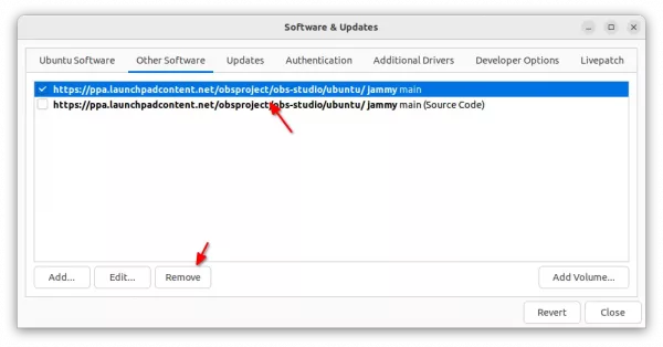 sudo add-apt-repository --remove ppa:obsproject/obs-studio