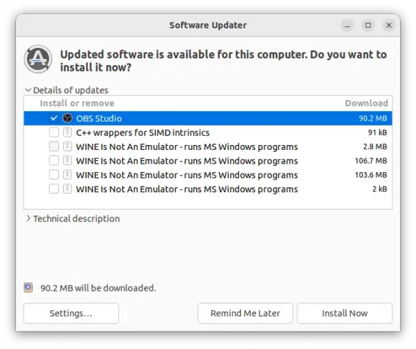 2. Then, either use Software Updater to upgrade the software package if an old version was installed on your system.