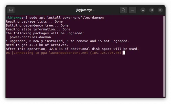 2. After refreshing package cache (it’s automatically while adding PPA), install/upgrade the power profiles daemon by running command: