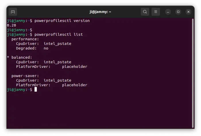 powerprofilesctl list– list available power profiles.powerprofilesctl get– get current power profile that’s in use.powerprofilesctl set– set power profile, values includeperformance,balanced, orpower-saver.