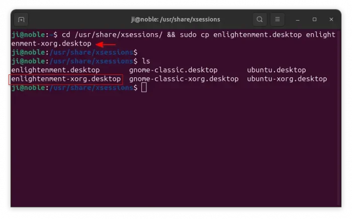cd /usr/share/xsessions/ && sudo cp enlightenment.desktop enlightenment-xorg.desktop