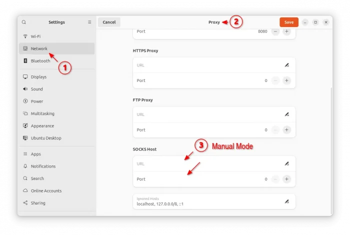 Next, you can use go to Network -> Proxy to enable the Socks5 proxy without authentication:
