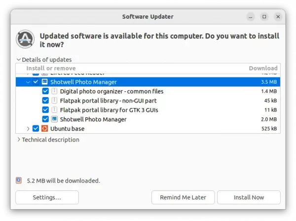 2. Next, launch Software Updater (Update Manager), then install the updates for the software package.
