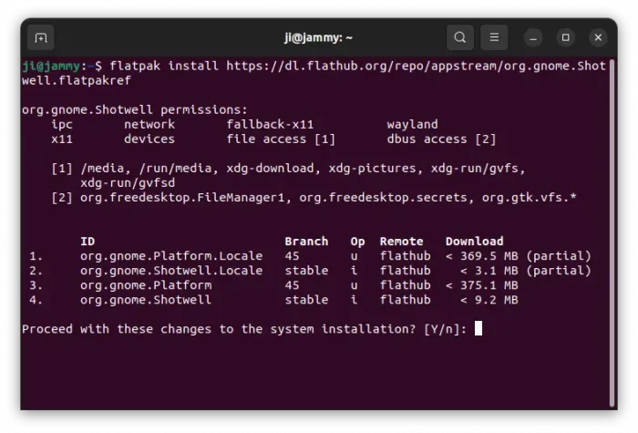 While Debian and Ubuntu users, just open terminal (for Ubuntu, press Ctrl+Alt+T) and run 2 commands below one by one to install the Shotwell Flatpak package: