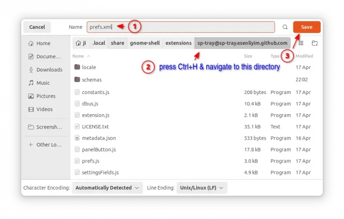• Save to “.local/share/gnome-shell/extensions/extensions/[email protected]/” directory.