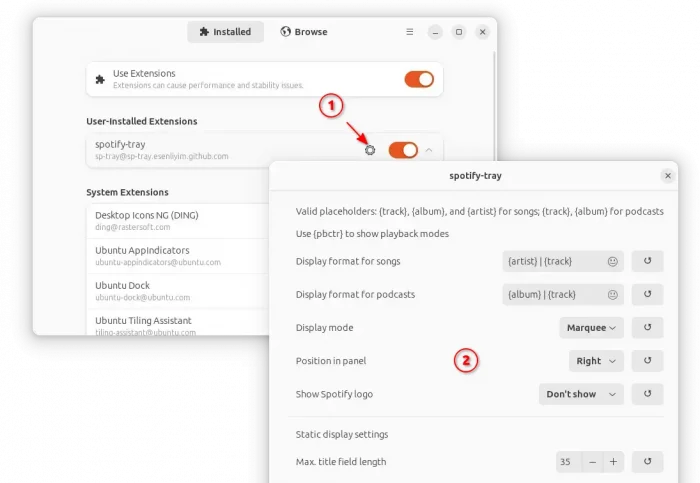 Show Spotify Playback Info in Top-bar in Ubuntu 24.04